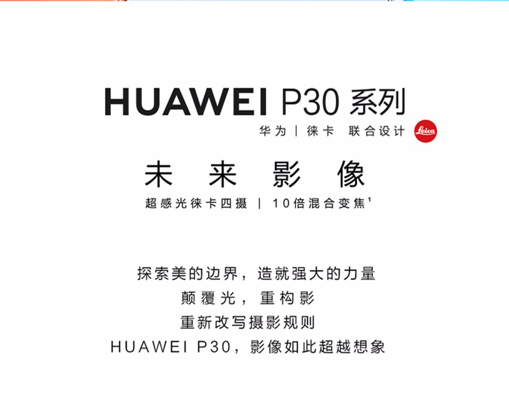 华为 HUAWEI P30 麒麟980AI智能芯片全面屏 超感光徕卡三摄