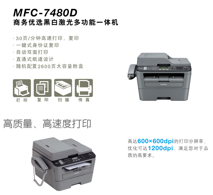 兄弟(brother)MFC-7480D 黑白激光多功能一体机